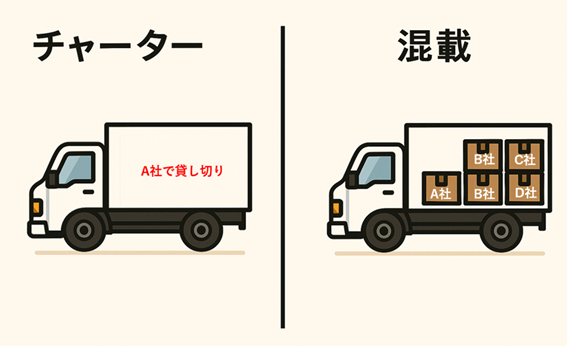 チャーター便は一台丸々抑えることで、混載便はほかのお客さんの荷物と一緒に運ぶということですね。