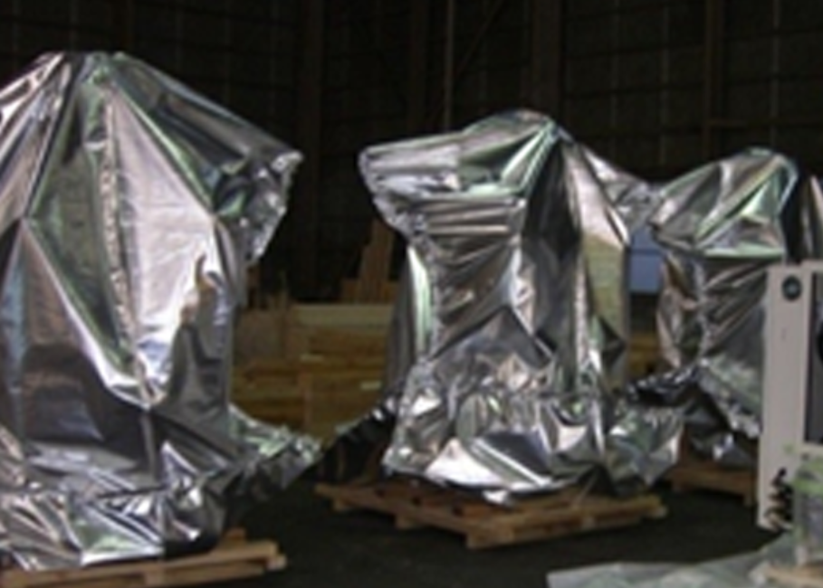 輸送中の湿気やサビを防ぐ。機械類に使われることが多い。