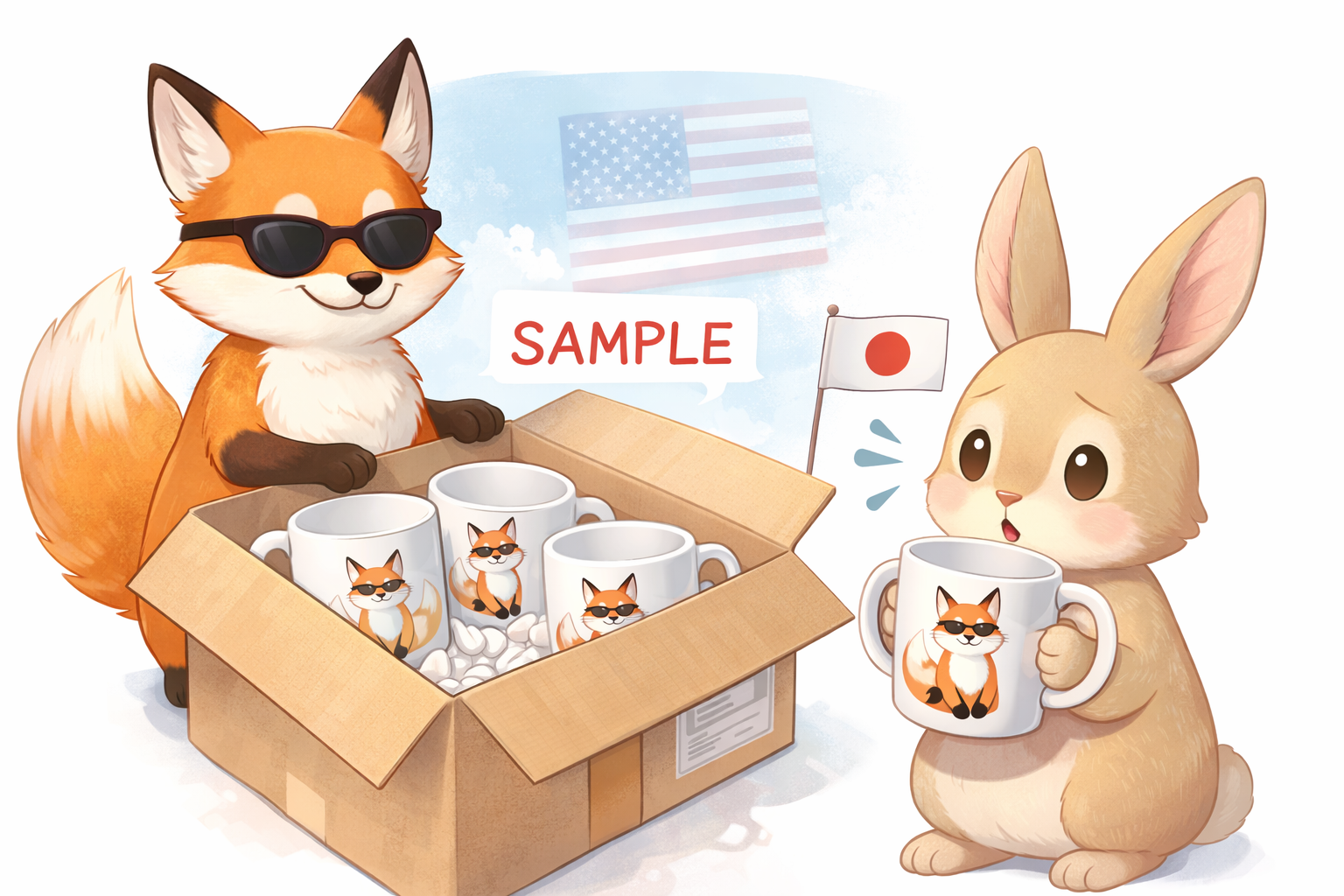 このItem No.3 “PLASTIC MUG Kitsune-kun design (SAMPLE)” が無償のサンプル品じゃな。