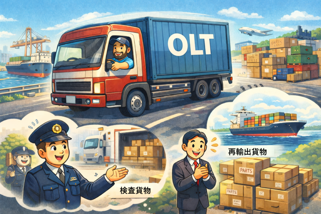 また、保税運送制度(OLT)を使えば、外国貨物のまま保税地域から別の保税地域へ運送できます。